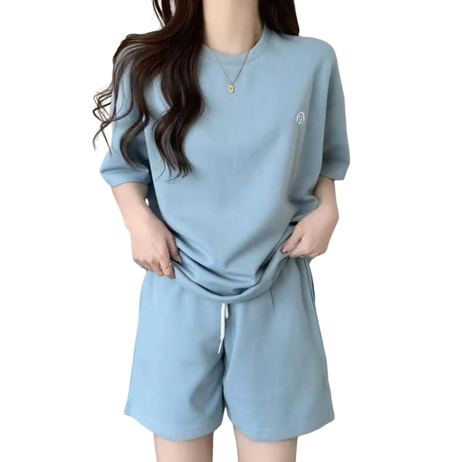 The F&R 2Pcs Summer Tracksuit Set is designed for active women who value both style and comfort in their workout gear. This set features a lightweight, breathable blend of polyester, ideal for warmer days or indoor exercise sessions. The O-neck short sleeve T-shirt is paired with drawstring elastic waist shorts, offering a relaxed, comfortable fit. The solid color and simple design make it versatile for both sporty and casual wear, perfect for outdoor sports, gym sessions, or just lounging in style.