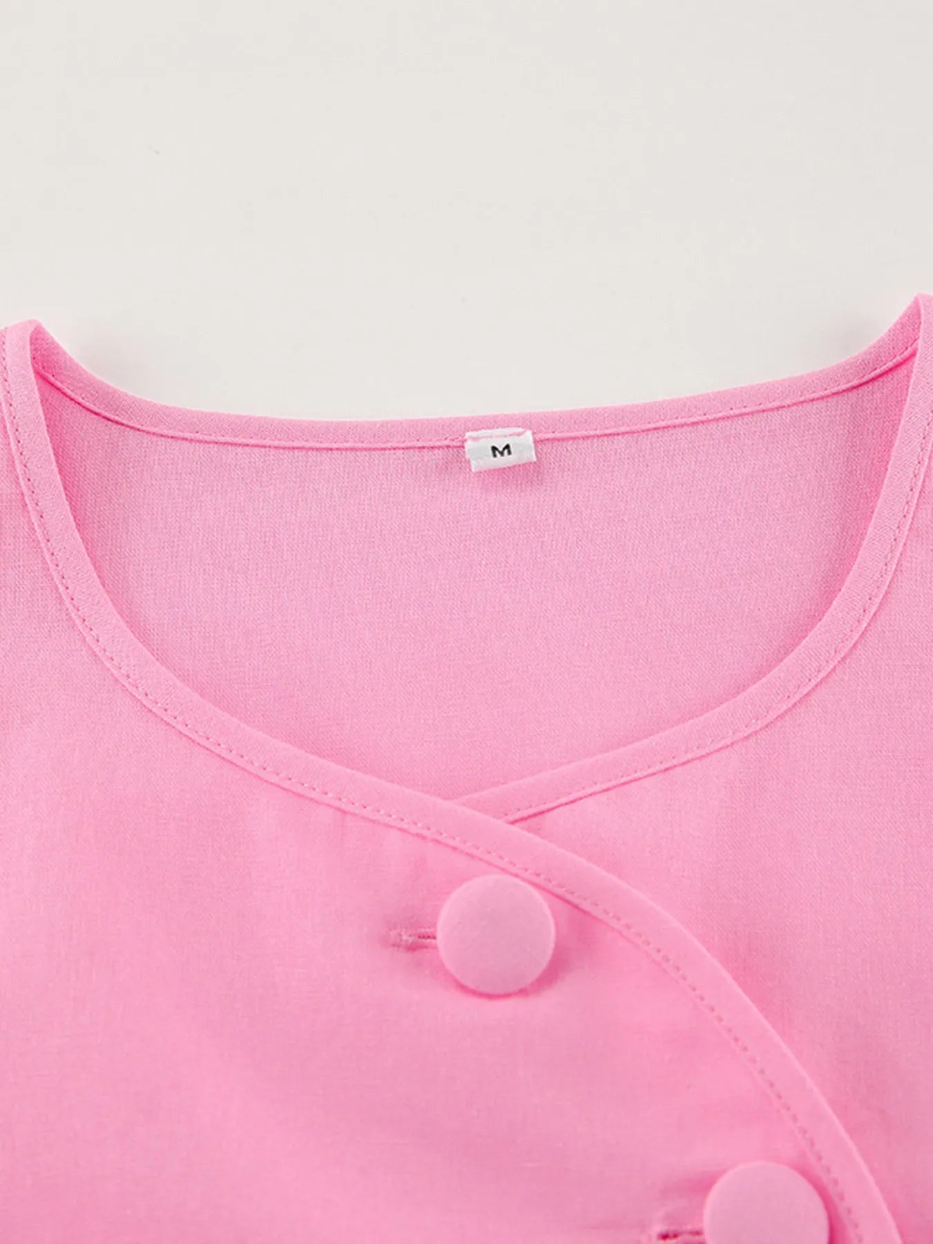F&R Buttoned Cotton Co-Ord Set – Short Sleeve Top & Skirt
